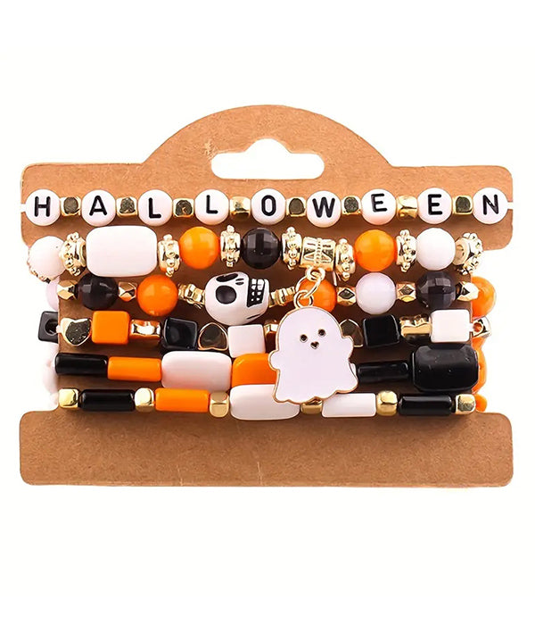 HALLOWEEN THEME MIX CLAY BEAD 6 STRETCH BRACELET SET - GHOST
