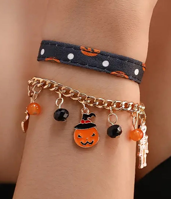 HALLOWEEN THEME MULTI CHARM DANGLE DOUBLE BRACELET SET